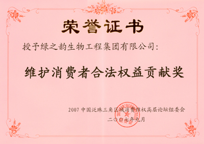 綠之韻集團(tuán)作為湖南省民營企業(yè)代表連續(xù)四年榮獲 “消費(fèi)者信得過單位”,被列為此次論壇的貴賓邀請(qǐng)單位并被論壇組委會(huì)授予“維護(hù)消費(fèi)者合法權(quán)益貢獻(xiàn)獎(jiǎng)”,董事長(zhǎng)兼總裁胡國安先生出席了此次論壇,并與泛珠區(qū)九省工商行政部門領(lǐng)導(dǎo)共同交流企業(yè)責(zé)任及消費(fèi)者維權(quán)等方面的問題。