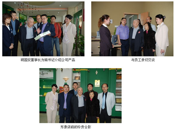 2007年4月15日,原湖南省委書記熊清泉攜其夫人蒞臨綠之韻集團考察指導工作?!吧菩?007、三湘助學行”香港明星足球隊(長沙)大型公益義演賽組委會總顧問、綠之韻集團董事長兼總裁胡國安先生,綠之韻集團董事、執(zhí)行總經理陳社行先生,董事、常務副總經理勞嘉女士,綠之韻國際集團(東南亞)股份有限公司執(zhí)行總經理龔振先生對老書記的到來表示了最熱烈的歡迎。并親自陪同老領導進行了詳細實察。