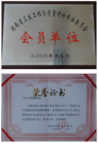 好消息:綠之韻螺旋藻憑借質(zhì)高品優(yōu)的優(yōu)特性經(jīng)過相關(guān)衛(wèi)生監(jiān)測機構(gòu)的檢測和推薦,被湖南省預(yù)防醫(yī)學(xué)會衛(wèi)生工程與質(zhì)量評價專業(yè)委員會專家綜評為“2006年度湖南省衛(wèi)生質(zhì)量優(yōu)質(zhì)新產(chǎn)品”。 并且,綠之韻公司被聘為湖南省預(yù)防醫(yī)學(xué)會衛(wèi)生工程與質(zhì)量評價專業(yè)委員會“會員單位”