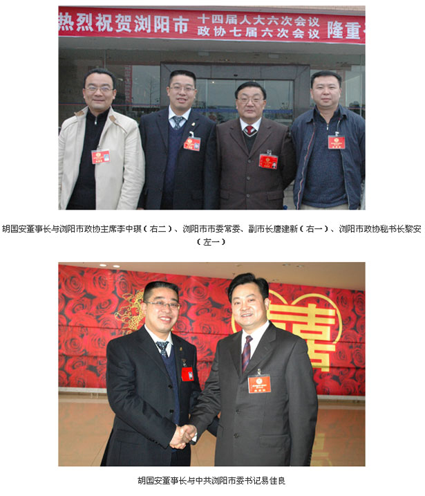 會議結(jié)束后,胡國安董事長深受大會精神的鼓舞,表示一定要把會議精神帶到自己的實際工作當中去,在中共瀏陽市委的領(lǐng)導(dǎo)下,為實現(xiàn)經(jīng)濟社會又好又快發(fā)展,建設(shè)經(jīng)濟繁榮、人民富裕、文化昌盛、山川秀美、社會和諧的新瀏陽作出自己新的更大的貢獻。