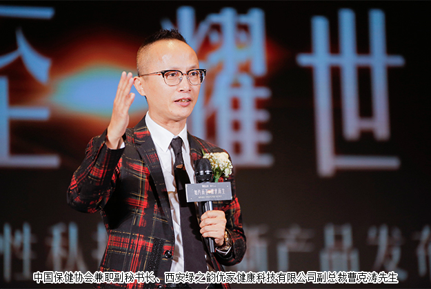 中國(guó)保健協(xié)會(huì)兼職副秘書(shū)長(zhǎng)、西安綠之韻優(yōu)家健康科技有限公司副總裁曹克濤先生,在《你的答案》激勵(lì)人心的旋律中開(kāi)始致辭。告訴我們未來(lái)的答案:拓路前行、領(lǐng)跑趨勢(shì)、權(quán)威品質(zhì)、深藍(lán)戰(zhàn)略,對(duì)如丹品牌的文化、發(fā)展戰(zhàn)略進(jìn)行了精湛的講解。