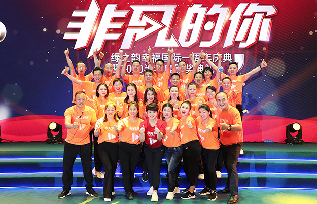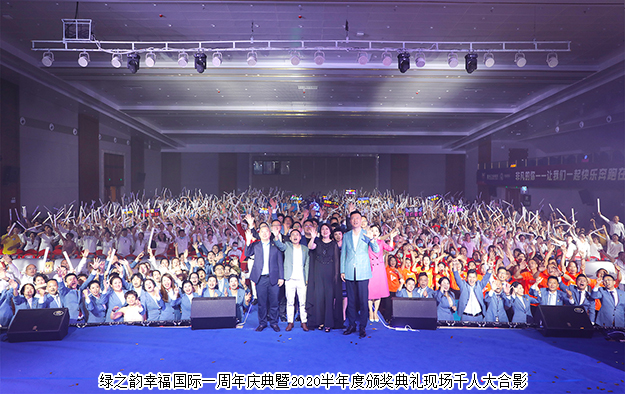 2020年6月21日,非凡的你——綠之韻幸福國際一周年慶典暨2020半年度頒獎典禮在集團(tuán)總部國際會議中心成功舉行。綠之韻集團(tuán)董事、總裁勞嘉,總經(jīng)理劉維利,執(zhí)行總經(jīng)理夏運(yùn)良及高管團(tuán)隊,與來自全國各地的1000余名綠之韻家人匯聚一堂,共襄盛舉。大會全程通過PC、移動端在線互動視頻直播,線上20000多人共同收看和分享了大會盛況。