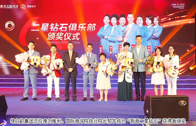 他們,用生命捍衛(wèi)夢想,用眼光預(yù)見未來,用胸襟包容所有,每一個奮斗的身影都閃耀出王者的光芒。綠之韻集團(tuán)副總裁胡均安、綠之韻國際商學(xué)院副院長侯俊霞,綠之韻集團(tuán)總經(jīng)理劉維利、綠之韻國際商學(xué)院執(zhí)行院長黎芋成,綠之韻集團(tuán)董事總裁勞嘉、執(zhí)行總經(jīng)理夏運(yùn)良分別為“新晉一星、二星、三星鉆石”獲得者頒獎,并致以祝賀。幸福代言人鄭堅宏、張秀花伉儷,鄭富文、陳國家、廖鵬分享獲獎感言。