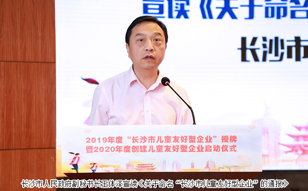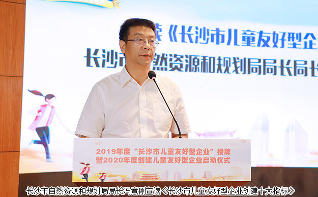 隨后,長沙市自然資源和規(guī)劃局局長馮意剛宣讀了《長沙市兒童友好型企業(yè)創(chuàng)建十大指標(biāo)》文件;長沙市人民政府副秘書長王體澤宣讀了《關(guān)于命名“長沙市兒童友好型企業(yè)”的通報(bào)》。綠之韻集團(tuán)等20家首批“長沙市兒童友好型企業(yè)”授牌,并致以祝賀。