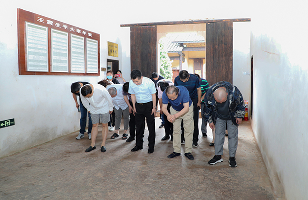 隨后,黨員一行來到了王震將軍故居參觀。“為國開基,將軍百戰(zhàn)彪青史;畢生革命,桑梓千秋仰大名?!边@一幅掛在故居門前的對聯(lián)是對王震將軍波瀾壯闊的一生的最好詮釋。在講解員的帶領(lǐng)下,黨員一行詳細(xì)了解了王震將軍的生平事跡,并在王震將軍畫像前敬獻(xiàn)花籃,行鞠躬禮,深情表達(dá)對革命先烈崇高的敬意。