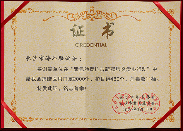 疫情無情人有情,眾志成城抗疫情。參加完捐贈儀式,胡國安董事長感觸頗深,他表示:長沙統(tǒng)一戰(zhàn)線心手相連、守望相助,彰顯了統(tǒng)一戰(zhàn)線廣大成員的責(zé)任擔(dān)當(dāng)和愛國情懷。當(dāng)前,正值鞏固疫情防控的重要時刻,我代表長沙市海外聯(lián)誼會廣大會員及會員企業(yè)鄭重承諾,我們將充分發(fā)揮界別資源優(yōu)勢,有人出人、有力出力、有錢出錢,通過多種方式用實際行動支持奮戰(zhàn)在一線的廣大醫(yī)護(hù)人員和基層工作者。圍繞疫情防控與恢復(fù)經(jīng)濟(jì)社會正常運(yùn)行的需求,我們將進(jìn)一步與社會各界人士和會員單位一起,結(jié)合自身優(yōu)勢和各行各業(yè)所長,為奪取疫情防控和經(jīng)濟(jì)社會發(fā)展雙勝利繼續(xù)貢獻(xiàn)智慧和力量。