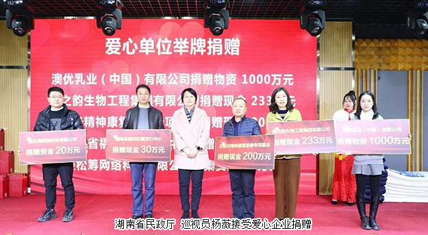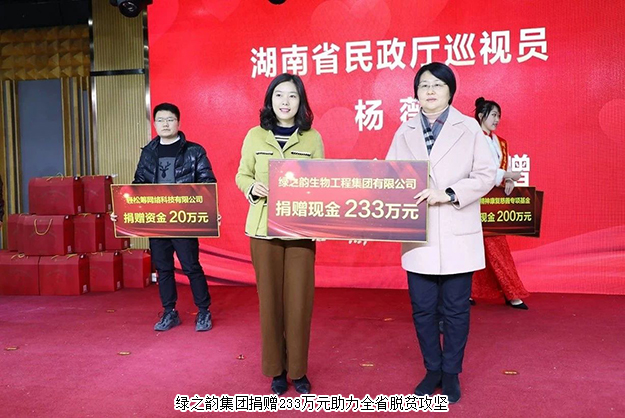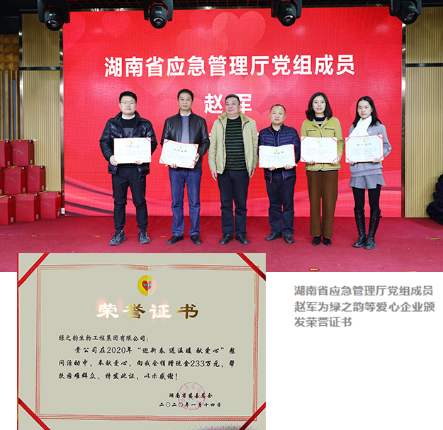 凝聚點滴力量,愛心傳遞溫暖。2020年1月14日,在農(nóng)歷新年即將到來之際,湖南省“迎新春送溫暖獻愛心”啟動儀式在長沙舉行。湖南省民政廳黨組書記、廳長唐白玉,省應(yīng)急管理廳黨組成員趙軍,省民政廳巡視員楊薇、辦公室主任歐陽標、慈社處處長楊柯,省慈善總會辦公室主任丁紹干,省民政廳福彩中心主任曾波彥以及各市州代表出席活動。綠之韻集團向湖南省慈善總會捐贈233萬愛心款參與貧困幫扶,助力脫貧攻堅??偛弥?、綠之韻公益基金會秘書長蔣文受邀參加活動。