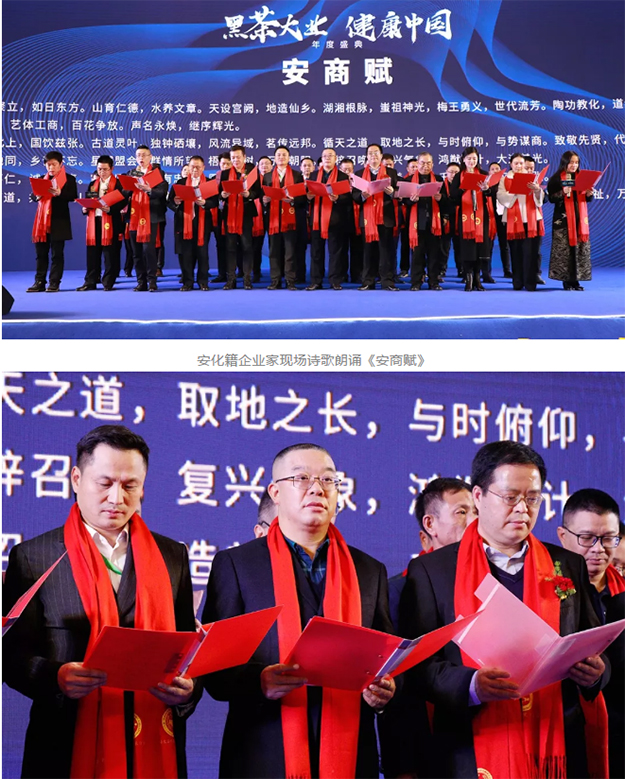 把酒言歡慶新年,情真意切敘鄉(xiāng)情。當(dāng)晚,還舉行了“黑茶大業(yè) 健康中國(guó)”2019年度盛典。盛典現(xiàn)場(chǎng)進(jìn)行了湖南省振興黑茶研究院授牌儀式,“安化黑茶終身成就獎(jiǎng)”“安化黑茶科技領(lǐng)軍人物獎(jiǎng)”“十大營(yíng)銷(xiāo)創(chuàng)新人物”等系列獎(jiǎng)項(xiàng)頒獎(jiǎng)儀式,黑茶產(chǎn)業(yè)發(fā)展主題演講等環(huán)節(jié)。優(yōu)美的音樂(lè)、動(dòng)人的舞蹈、開(kāi)懷的節(jié)目、熱情高漲的抽獎(jiǎng),整場(chǎng)晚會(huì)洋溢著歡樂(lè)的氣氛和濃濃的鄉(xiāng)情,歡聲笑語(yǔ)與美酒佳肴交織成鄉(xiāng)音裊裊,在湘江之濱的夜空中久久回蕩。