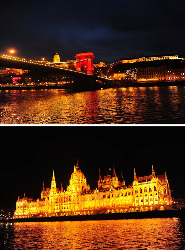 夜游藍色多瑙河,兩岸風(fēng)光如同畫卷徐徐展開,在綠之韻人一聲聲驚嘆中,便可感知它的浪漫與唯美。幾座大橋左手牽著布達,右手挽著佩斯,讓這兩座中古小城再無罅隙,一同沉溺在,多瑙河多情的懷抱里。而多瑙河三鎮(zhèn)(山丹丹、維謝格拉德鎮(zhèn)、埃斯泰爾戈姆鎮(zhèn))的游覽,讓綠之韻人遇見了“一夜兩城”的奇觀——第一天陽光明媚下的多瑙河與第二天大雪紛飛的多瑙河,這是運氣、是福氣,也是奇跡!
