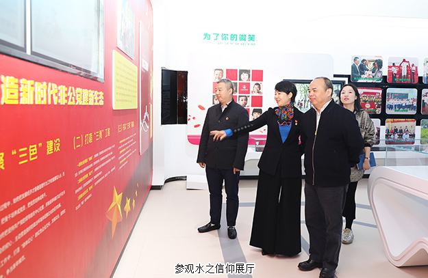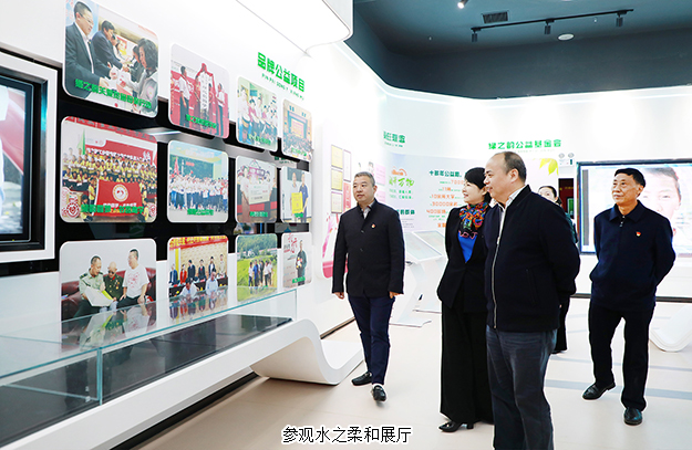 調(diào)研組一行參觀了綠之韻集團即將落成的國際會議中心展廳。綠之韻集團副總裁胡均安、黨委書記劉云帶領(lǐng)調(diào)研組一行依次參觀了“水之源起、水之驕子、水之柔和、水之信仰、水之寬廣、水之謀略、水之長遠、水之使命”八個展廳。從文字、圖片、影視多角度、全方位的向調(diào)研組一行展示了綠之韻入駐瀏陽經(jīng)開區(qū)十六年的發(fā)展歷程,并圍繞產(chǎn)品研發(fā)、精準扶貧、非公黨建和公益慈善等方面的工作情況作了詳細匯報。多年來,綠之韻不斷推進產(chǎn)品全面升級換代,加強基地規(guī)?;?、標準化、現(xiàn)代化建設(shè),深化產(chǎn)學(xué)研創(chuàng)新模式,深耕對企業(yè)文化提煉和產(chǎn)品理念的挖掘,積極構(gòu)建大健康產(chǎn)業(yè)生態(tài)集群。在企業(yè)發(fā)展的同時,公司積極承擔社會責任,踴躍參與和傾情捐助了愛心助學(xué)、關(guān)愛貧困母親、修橋補路、賑災(zāi)扶貧等百余項社會公益事業(yè),累計捐贈款物近7000萬元。