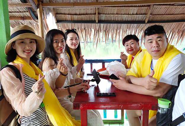 有著五星夢境美譽(yù)之稱的海河灣是一座水上村,村里的房屋都是是建造在贊進(jìn)海底的高腳柱上。幾排長屋,以厚木板鋪成的走道相連接,他們的船只則停靠在旁邊。來到水上村莊時,綠之韻家人們乘坐著傳統(tǒng)式的舢板船,感受非一般的水上村莊生活