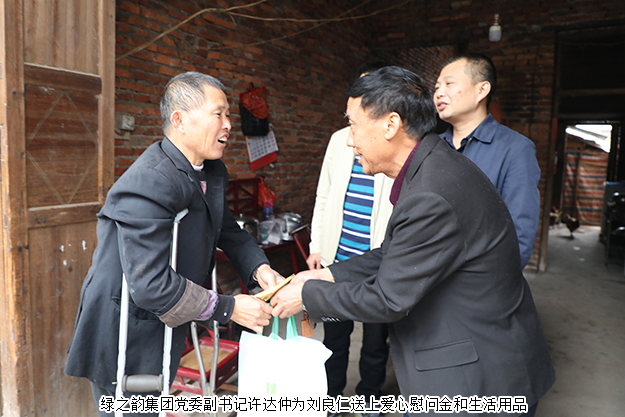 車(chē)剛到達(dá)巷子附近,拄著雙拐的劉良仁已經(jīng)在門(mén)口等著了。劉良仁因病雙腿骨頭壞死,不能正常行走、久坐和久站,他的妻子也有嚴(yán)重的腰椎盤(pán)突出,夫妻兩人都沒(méi)有勞動(dòng)能力。家中三個(gè)女兒大的14歲,小的10歲,都還在讀書(shū)。因病因?qū)W致貧,又沒(méi)有勞動(dòng)力,成為了家里久久不能脫貧的主要原因。劉良仁家中還是很早年建的紅磚房,連家具都沒(méi)有幾樣,廚房里現(xiàn)在還用蜂窩煤灶臺(tái),他笑著跟許達(dá)仲副書(shū)記說(shuō)盡量降低生活成本,娃要讀書(shū),他和妻子身體還不好。此次瀏陽(yáng)市公安局經(jīng)偵大隊(duì)大隊(duì)長(zhǎng)蔣騫、副隊(duì)長(zhǎng)李偉與綠之韻集團(tuán)黨委副書(shū)記許達(dá)仲等一行為劉良仁送來(lái)了愛(ài)心慰問(wèn)金和健康生活產(chǎn)品。