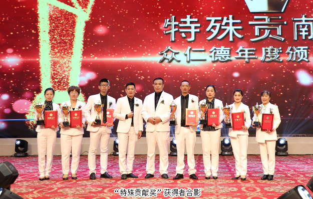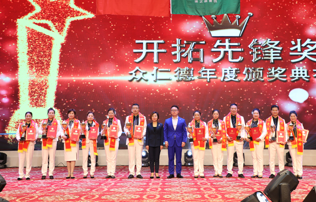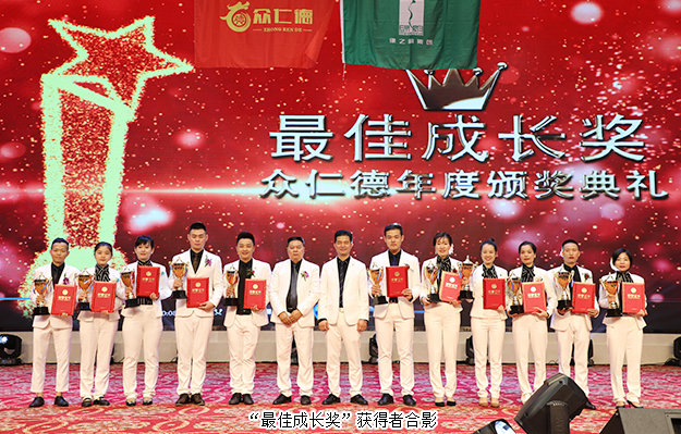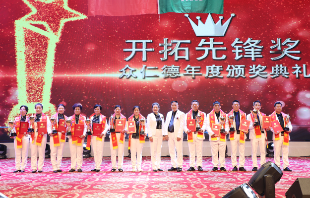 大會(huì)還舉行了盛大的頒獎(jiǎng)儀式,為取得優(yōu)異成績(jī)的市場(chǎng)精英予以表彰?!伴_拓先鋒獎(jiǎng)”“創(chuàng)業(yè)明星獎(jiǎng)”“最佳成長(zhǎng)獎(jiǎng)”“特殊貢獻(xiàn)獎(jiǎng)”“卓越領(lǐng)袖獎(jiǎng)”等獎(jiǎng)項(xiàng)依次頒發(fā)。綠之韻集團(tuán)副總經(jīng)理梅其慧、市場(chǎng)管理中心業(yè)務(wù)總經(jīng)理曹兵、市場(chǎng)管理中心業(yè)務(wù)總監(jiān)譚紅和綠之韻眾仁徳系統(tǒng)創(chuàng)始人孟鈺潔與眾仁徳優(yōu)秀領(lǐng)導(dǎo)人上臺(tái)為獲獎(jiǎng)的優(yōu)秀精英頒獎(jiǎng)并送上祝福。