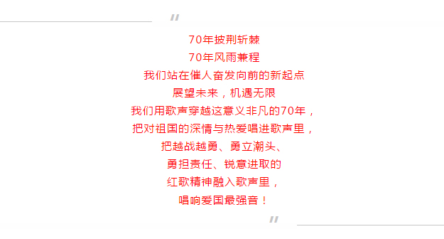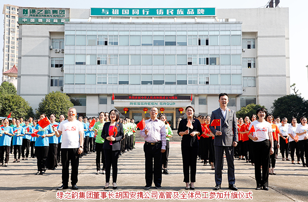 為慶祝新中國成立70周年,2019年9月29日,綠之韻集團(tuán)舉行國慶升旗儀式暨拉紅歌大賽,共同祝愿我們偉大的祖國繁榮昌盛、安定富強。綠之韻集團(tuán)董事長胡國安、董事總裁勞嘉攜公司高管及全體員工參加活動。