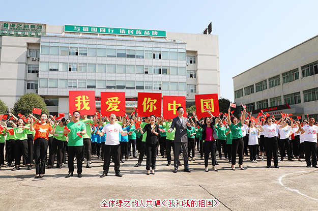 凝聚愛國情,共筑中國夢。綠之韻集團(tuán)董事、總裁勞嘉在國旗下莊嚴(yán)表示,70年風(fēng)雨兼程見證祖國滄桑巨變,中華民族迎來了從站起來、富起來到強起來的偉大飛躍。此次升旗儀式既是一次生動的愛國主義教育,也是公司凝心聚力激發(fā)員工愛國、愛企、愛崗情懷的重要活動,更是弘揚愛國精神、傳承優(yōu)良傳統(tǒng)的重要載體。值此新中國成立70周年,我們在這里隆重集會,舉行升國旗儀式,唱響革命紅歌,以這種莊嚴(yán)神圣的方式銘記歷史、共賀國慶!十六年來,綠之韻始終把自身發(fā)展統(tǒng)一到國家戰(zhàn)略的恢弘布局中,充分發(fā)揮綠色大健康全產(chǎn)業(yè)鏈優(yōu)勢,助力中醫(yī)藥、健康中國和“一帶一路”倡議發(fā)展,在各方面均取得了一定的成績。這些成績的取得,得益于所有綠之韻人的辛勞和付出,得益于這個最偉大的創(chuàng)業(yè)新時代。揮別波瀾壯闊的70年,展望承載著民族復(fù)興中國夢的下一個70年!未來,希望全體員工能夠不忘初心,牢記使命,繼承和發(fā)揚革命光榮傳統(tǒng),以諄諄愛國之情和拳拳報國之心,立足本職、精益求精、勇于擔(dān)當(dāng)、同心共創(chuàng),繼續(xù)為實現(xiàn)“綠之韻夢、中國夢”而努力奮斗!