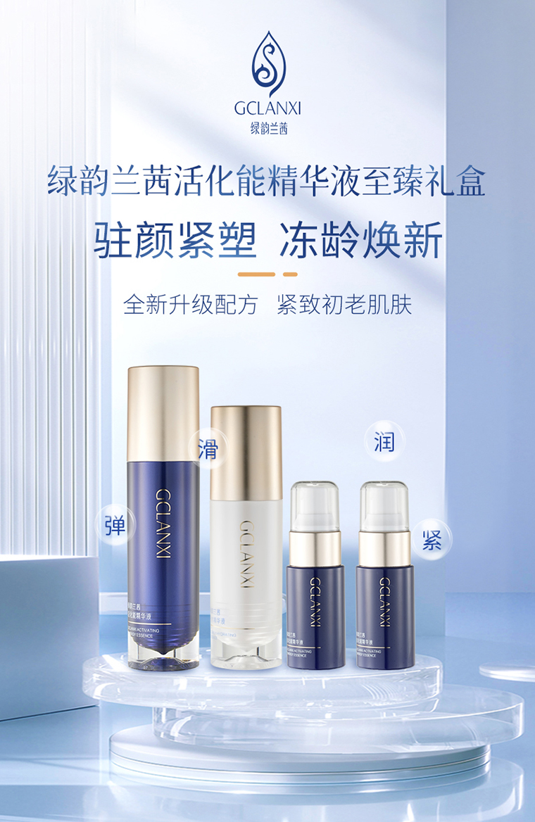 取綠豆大小精華液自下而上、自內向外螺旋按摩,重點部位重復按摩,直至皮膚吸收。