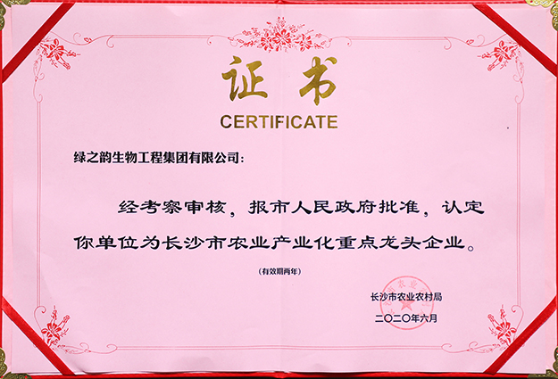 綠之韻集團董事長胡國安表示,將以此次獲評“長沙市農(nóng)業(yè)產(chǎn)業(yè)化重點龍頭企業(yè)”為契機,繼續(xù)鎖定“三農(nóng)”產(chǎn)業(yè),本著助力農(nóng)業(yè)產(chǎn)業(yè)化、以點帶面扶貧的初衷,圍繞促進鄉(xiāng)村產(chǎn)業(yè)振興和農(nóng)業(yè)產(chǎn)業(yè)化經(jīng)營,不斷強化科研成果轉(zhuǎn)化,大力推行生態(tài)綠色生產(chǎn),為促進鄉(xiāng)村產(chǎn)業(yè)振興和推動經(jīng)濟社會發(fā)展作出新的更大貢獻。