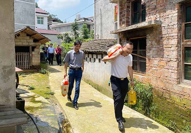 期間,胡國安董事長陪同中共湖南省委統(tǒng)戰(zhàn)部副部長陳瀟一行實(shí)地考察了茅坪村游客服務(wù)中心,詳細(xì)了解了該村自然資源和人文資源優(yōu)勢等情況,并先后走進(jìn)結(jié)對幫扶的貧困農(nóng)戶家中,耐心詢問家庭收入、身體狀況、小孩就學(xué)等情況以及脫貧致富中的實(shí)際困難,共商解決辦法和防止返貧計(jì)策。作為此次調(diào)研組成員之一,胡國安董事長與家鄉(xiāng)父老鄉(xiāng)親們坐在一起共敘鄉(xiāng)情、拉家常,詳細(xì)詢問他們身體健康狀況、家庭收入、扶貧政策落地等方面的情況,并為大家送上了愛心慰問物資。在貧困戶家里,剛剛建成的一棟干凈整潔新房,與一墻之隔的居住了幾十年的老舊木質(zhì)危房形成了鮮明的對比?!白D銈兩钤竭^越好”,臨走前胡國安董事長向父老鄉(xiāng)親們寄予了最真摯的祝愿。