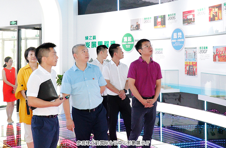 調(diào)研組一行先后參觀了綠之韻黨建文化教育基地、綠之韻國際會議中心形象展示廳。展廳以綠之韻“水的精神”為貫穿構想,運用現(xiàn)代化、科技化、智能化的創(chuàng)新技術手段,全方位、多角度生動呈現(xiàn)了綠之韻十七年的發(fā)展歷程、企業(yè)文化、所獲表彰、黨建公益、創(chuàng)業(yè)就業(yè)、產(chǎn)品科研、金融布局等企業(yè)發(fā)展全景。胡均安副總裁、劉云書記圍繞非公黨建、基層團建、青年創(chuàng)業(yè)、產(chǎn)業(yè)布局、社會責任和愿景規(guī)劃等方面的工作情況向調(diào)研組一行作了詳細匯報。