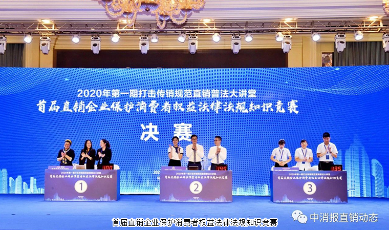 為扎實做好“六穩(wěn)”工作,全面落實“六?!比蝿眨?月20日,以“復商復市促消費 誠信守法保經營”為主題的2020年第一期打擊傳銷規(guī)范直銷普法大講堂活動在重慶市舉辦。本次普法宣傳活動由國家市場監(jiān)督管理總局規(guī)范直銷與打擊傳銷辦公室指導,中國消費者報社承辦、重慶市市場監(jiān)督管理局協(xié)辦。市場監(jiān)管總局規(guī)范直銷與打擊傳銷辦公室、中國消費者報社、重慶市市場監(jiān)督管理局主要負責同志、重慶市渝北區(qū)人民政府有關負責同志參加了本次活動。綠之韻集團董事、總裁勞嘉受邀參加活動并接受了采訪,綠之韻集團市場管理中心業(yè)務總經理曹兵帶領公司知識競賽代表隊參加了本次普法宣傳活動。