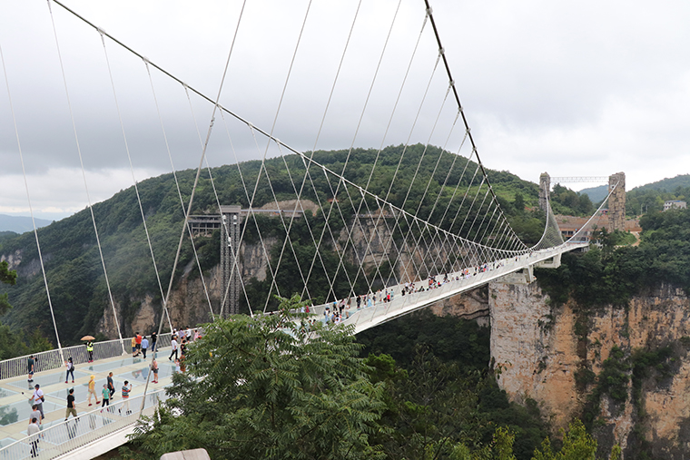 張家界大峽谷玻璃橋又名“云天渡”,有著"天橋合一,以渡天下之人"的美譽,是一座全透明玻璃景觀橋梁,兼具景區(qū)行人通行、游覽、蹦極、溜索、T臺等功能,也是世界最高最長的斜拉式高山峽谷玻璃橋。綠之韻家人們漫步在玻璃橋,輕吻藍(lán)天白云;走過天懸棧道,乘坐高空索道、諾克里滑道,感受速度與激情的碰撞;觀彩虹廣場,望仙人洗面,聽蝴蝶泉,穿一簾幽夢,走摸摸洞,游神泉湖,全面感受湖的清澈、山的倒蘸、水的秀麗、情的溫柔,真正做到超脫塵世、忘卻人間。