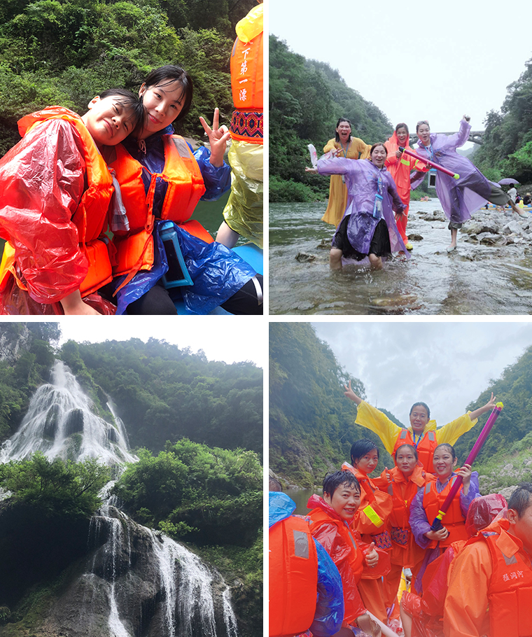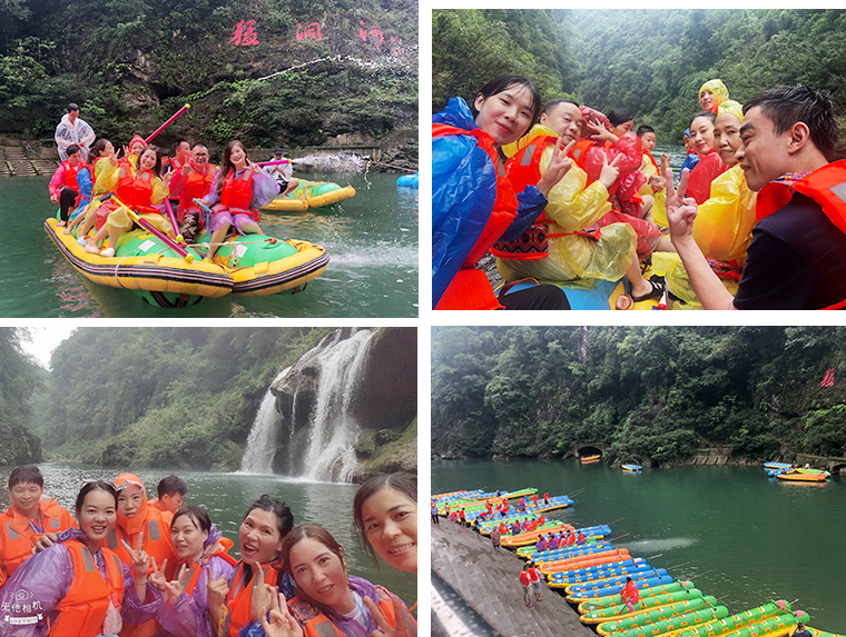 “張家界看山,猛洞河玩水。”在猛洞河,綠之韻家人們乘坐著小筏,從“哈妮宮”出發(fā),順?biāo)?,一葉扁舟,在原始次生林的高山峽谷之中,身著救身衣、乘皮舟、闖險灘、博激流、沿途觀美景、沐瀑流、打水仗、過峽關(guān),出沒浪端谷底,途經(jīng)三角巖、雞籠門、捏土瀑布、閻王灘、落水坑瀑布、夢思峽等數(shù)十個景點,兩岸秀麗的風(fēng)光無不令人叫絕觀止。家人們在漂流途中放歌長嘯,或搏浪闖灘,或戲水嬉鬧,找回快樂童真的自我。