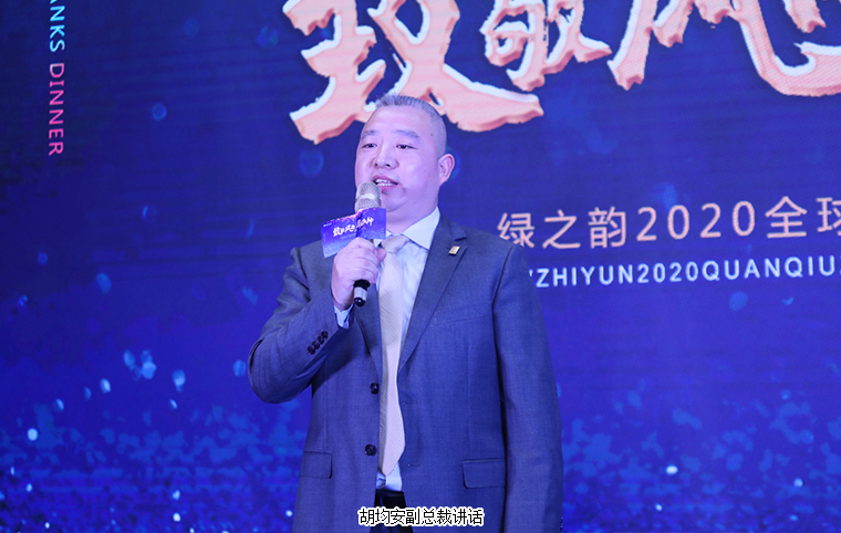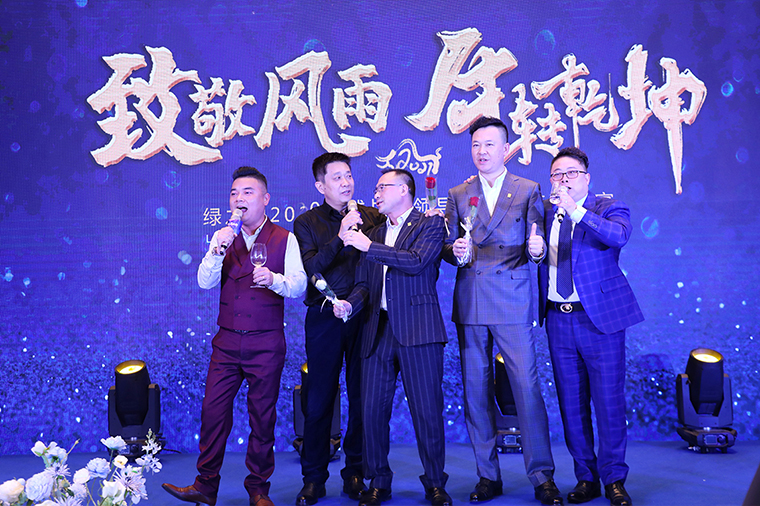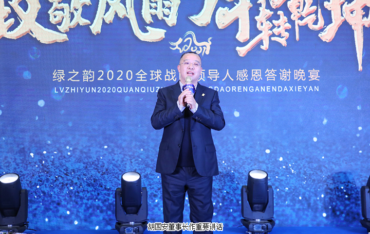 晚宴最后,胡國安董事長作重要講話。他表示,感謝所有老朋友、新伙伴在嚴(yán)格疫情防控的前提下,前來參加此次特殊時期的晚宴,感謝大家一直以來對綠之韻平臺的信任、堅守和支持。展望2021,綠之韻將繼續(xù)堅持“三個思維”:一是底線思維。堅守正道,做正確的事;堅守產(chǎn)品,做規(guī)范的事;堅守創(chuàng)新,做領(lǐng)先的事;二是抱團(tuán)思維。綠之韻是我們共有的品牌,我們應(yīng)該具備主人翁意識和抱團(tuán)取暖的思維,聚沙成塔,一起來呵護(hù)品牌、發(fā)展品牌、壯大品牌。三是命運(yùn)共同體思維。企業(yè)文化融合的使命共同體,合作共贏的利益共同體,回饋社會的責(zé)任共同體。他殷切希望,每一位綠之韻人都能成為一名旅行家,永遠(yuǎn)奔跑在夢想的路上;成為一名慈善家,心懷感恩,致力于公益事業(yè),傳遞行業(yè)正能量。未來,讓我們一起榮辱與共、攜手前行,奔赴綠之韻第四個五年規(guī)劃的第三個年頭,實現(xiàn)共同的發(fā)展愿景!隨后,在全場所有嘉賓的共同見證下,胡國安董事長、勞嘉總裁、胡均安副總裁共同舉杯祝酒,為所有嘉賓、事業(yè)伙伴和家人們送上誠摯的祝福。