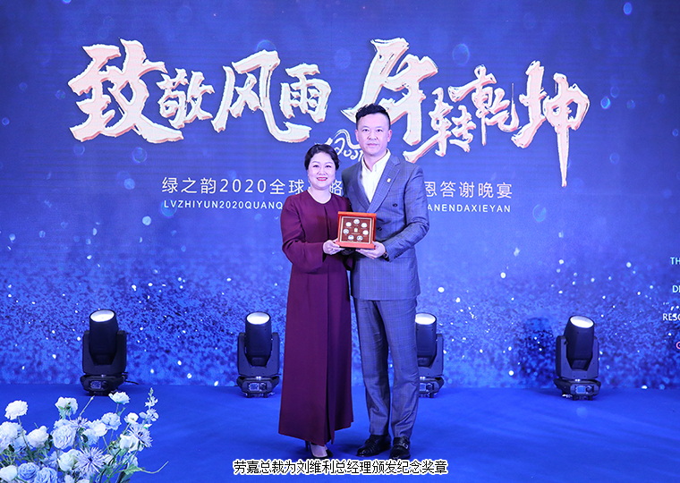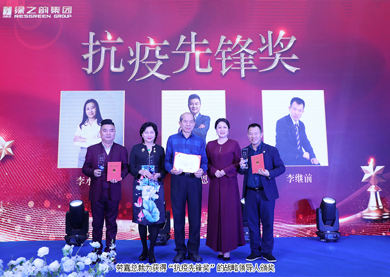 短短幾分鐘的視頻回顧,將綠之韻人過去一年胼手胝足的前行軌跡清晰地呈現(xiàn)。2020年,在這場席卷全球的疫情大考中,綠之韻集團(tuán)上下齊心協(xié)力,在胡國安董事長、勞嘉總裁以及市場戰(zhàn)略領(lǐng)導(dǎo)人的帶領(lǐng)下,全體員工、全國各地綠之韻伙伴的踴躍奉獻(xiàn)愛心,用力所能及的力量支援抗擊疫情,交出了一份滿意的答卷。今天的晚宴現(xiàn)場,綠之韻公益基金會向其中表現(xiàn)最突出的李水蓮·劉時達(dá)伉儷、李繼前、費(fèi)毓恩授予“抗疫先鋒”稱號。