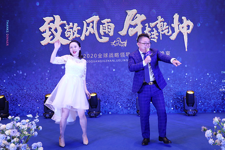 晚宴以“致敬風(fēng)雨 牛轉(zhuǎn)乾坤”為主題,綠之韻集團(tuán)總裁助理蔣文擔(dān)任主持。晚宴伊始,綠之韻集團(tuán)董事、總裁勞嘉致辭。她首先代表集團(tuán)公司對各位嘉賓、各位市場優(yōu)秀領(lǐng)導(dǎo)人的到來致以熱烈的歡迎和誠摯的新春問候!在致辭中,她向大家解讀了“重啟”“蛻變”和“相信”三個“關(guān)鍵詞”。一是重啟,過去的一年因為疫情,我們一度按下“暫停鍵”,新的一年我們一定要按下“重啟鍵”,重啟思維、重啟戰(zhàn)略、重啟戰(zhàn)術(shù)和重啟市場。二是蛻變,嶄新的2021將是我們準(zhǔn)確識變、主動求變、以變制變的一年。三是相信,2020年集團(tuán)公司度過了最為艱難的一年,但我們要相信在度過這些艱難險阻之后,我們終將迎來曙光。2020年我們相聚的日子太少,希望通過今天的晚宴,各位優(yōu)秀的綠之韻全球戰(zhàn)略領(lǐng)導(dǎo)人能攜手同心、抱團(tuán)發(fā)展、追求共贏,為我們共同的夢想去開啟我們的2021。