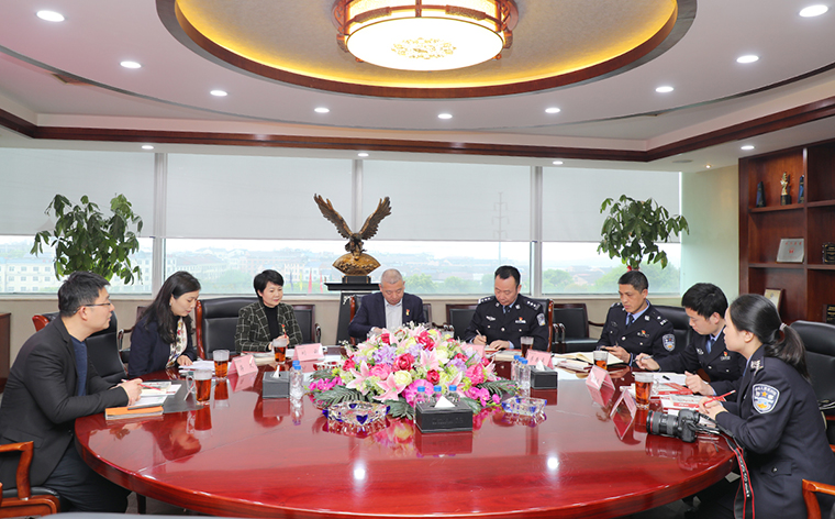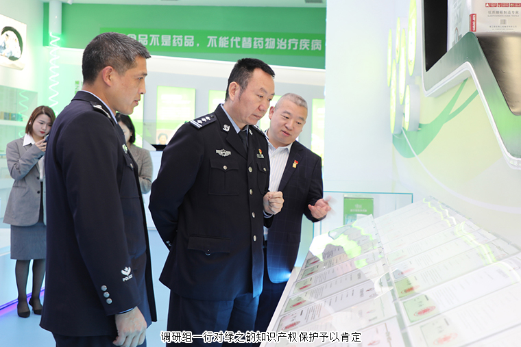 2021年4月13日,長沙市公安局知識產權犯罪偵查支隊支隊長鄭志帶領法制專干李春來,民警王陽生、周丹一行蒞臨綠之韻集團調研指導。綠之韻集團副總裁胡均安,黨委書記劉云,總裁助理蔣文全程陪同調研。