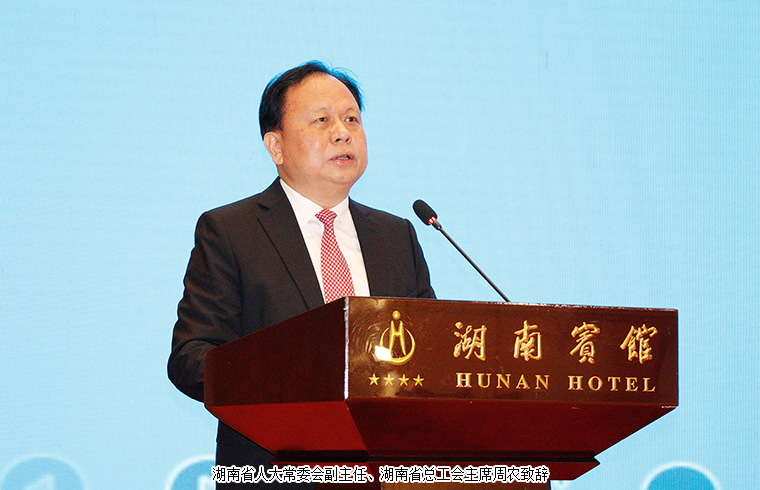 大會由中共湖南省委副書記、省長毛偉明主持。會議伊始,湖南省人大常委會副主任、黨組成員,湖南省總工會主席周農(nóng)致辭。他表示,在湖南省委省政府的堅強(qiáng)領(lǐng)導(dǎo)下,全省工人階級和廣大勞動群眾堅定地沿著習(xí)近平總書記指引的方向,在實施三高四新戰(zhàn)略建設(shè)現(xiàn)代化新湖南的主戰(zhàn)場上揮灑汗水,在抗擊新冠肺炎疫情、落實長效防控的一線經(jīng)受考驗,在守護(hù)一湖四水、推進(jìn)生態(tài)文明建設(shè)中拼搏奉獻(xiàn),在決勝全面小康打贏脫貧攻堅的決戰(zhàn)中勇挑重?fù)?dān),在重點(diǎn)工程、重大項目中大顯身手,在各行各業(yè)的本職崗位上施展才華、建功立業(yè),為全省經(jīng)濟(jì)社會高質(zhì)量發(fā)展做出了積極的貢獻(xiàn)。展望未來,十四五藍(lán)圖已經(jīng)繪就,新的征程已經(jīng)開始,讓我們深入學(xué)習(xí)貫徹習(xí)近平新時代中國特色社會主義思想,從黨的百年歷史中汲取砥礪奮進(jìn)的精神力量,把個人夢想融入中華民族的復(fù)興夢,堅定不移聽黨話,矢志不渝跟黨走。大力弘揚(yáng)勞模精神、勞動精神、工匠精神,以主人公的姿態(tài)積極投身三高四新的火熱事業(yè),發(fā)揮工人階級主力軍的作用,為奮力譜寫新時代堅持和發(fā)展中國特色社會主義的湖南新篇章中作出工農(nóng)階級的新的偉大貢獻(xiàn)。