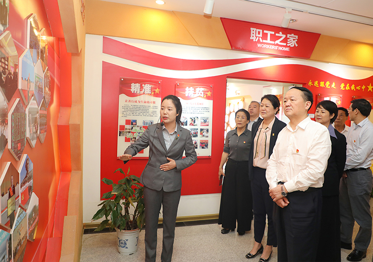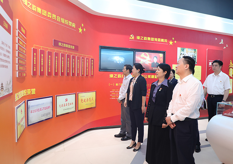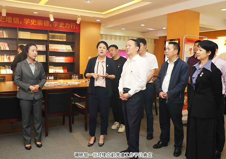 調(diào)研組一行先后參觀了綠之韻黨建文化教育基地和國際會議中心形象展示廳。在黨建文化教育基地,綠之韻集團(tuán)黨委書記劉云就非公黨建和黨史學(xué)習(xí)教育工作開展情況向調(diào)研組一行作匯報。綠之韻自2006年成立黨支部,2013年獲批成立黨總支部,2016年8月獲批成立黨委以來,始終堅持以三色(紅色、金色、綠色)建設(shè)為策略,注重紅色基因塑造的新時代非公黨建新生態(tài),實施“指導(dǎo)式”“責(zé)任式”“溫情式”管理,充分發(fā)揮黨委的政治核心作用和黨員的先鋒模范作用,強力推進(jìn)企業(yè)健康、可持續(xù)性發(fā)展。為進(jìn)一步推動黨史學(xué)習(xí)教育在企業(yè)走深走實,今年以來,綠之韻集團(tuán)聚焦黨史學(xué)習(xí)教育重點內(nèi)容,緊緊圍繞“學(xué)史明理、學(xué)史增信、學(xué)史崇德、學(xué)史力行”目標(biāo)要求,統(tǒng)籌謀劃、精心組織,結(jié)合企業(yè)發(fā)展實際情況開展了多種形式的黨史學(xué)習(xí)教育主題活動,如雷鋒精神主題黨課教育、黨史專題學(xué)習(xí)宣講會、紅色共建主題實踐活動以及黨史學(xué)習(xí)教育主題讀書日等活動,在集團(tuán)上下掀起了黨史學(xué)習(xí)教育的熱潮。調(diào)研組一行對綠之韻集團(tuán)在黨史學(xué)習(xí)教育工作中取得的階段性成效予以充分肯定。