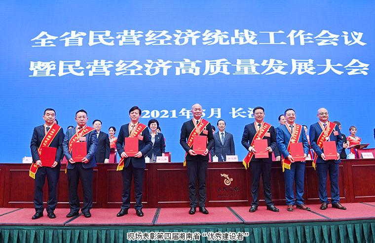 2021年5月28日下午,湖南省民營經(jīng)濟(jì)統(tǒng)戰(zhàn)工作會議暨民營經(jīng)濟(jì)高質(zhì)量發(fā)展大會在長沙召開。會議深入學(xué)習(xí)貫徹習(xí)近平總書記關(guān)于民營經(jīng)濟(jì)的重要講話指示精神,全面落實(shí)關(guān)于加強(qiáng)新時(shí)代民營經(jīng)濟(jì)統(tǒng)戰(zhàn)工作的意見和全國民營經(jīng)濟(jì)統(tǒng)戰(zhàn)工作會議精神,表彰第四屆湖南省“優(yōu)秀建設(shè)者”,交流民營經(jīng)濟(jì)統(tǒng)戰(zhàn)工作經(jīng)驗(yàn),為促進(jìn)民營經(jīng)濟(jì)高質(zhì)量發(fā)展、建設(shè)現(xiàn)代化新湖南凝心聚力。