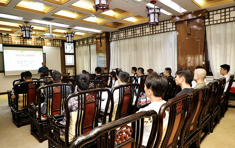 “岳麓書院作為中國歷史上四大書院之一,歷經(jīng)千年而弦歌不絕,學(xué)脈延綿……”在講解員的解說中,綠之韻家人們來到岳麓書院參觀,了解岳麓書院演變延續(xù)過程及湖湘文化典故,感受到了岳麓書院作為千年學(xué)府的獨(dú)特魅力和文化底蘊(yùn)。湖南大學(xué)岳麓書院教授陳力祥在岳麓書院的文昌閣為大家?guī)怼逗嫖幕c精神》的主題演講,讓在場(chǎng)的綠之韻家人們深受湖湘文化的精神洗禮。