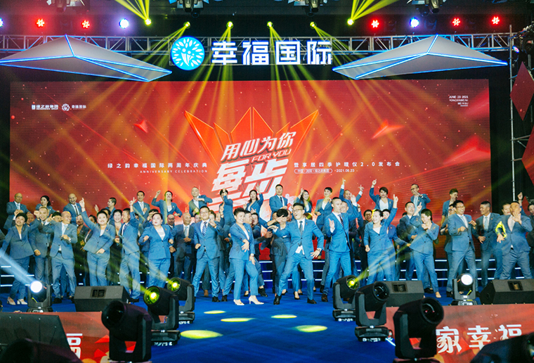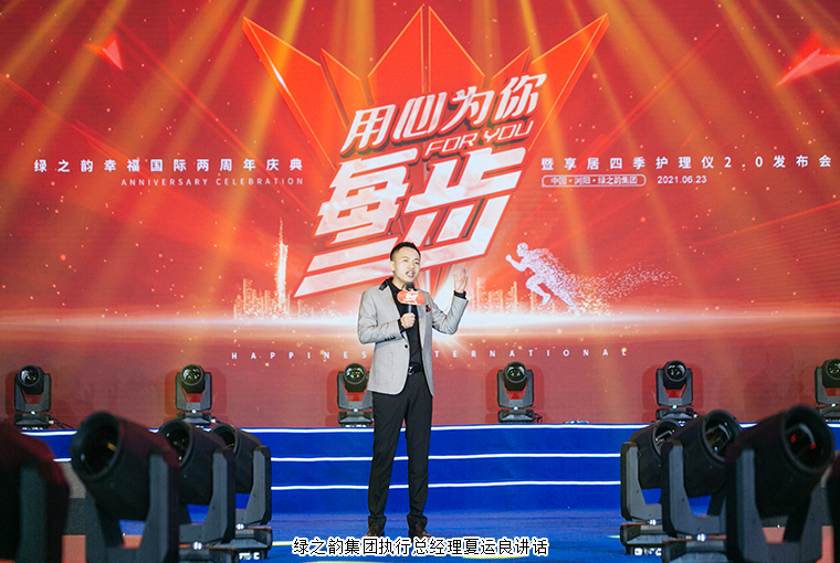 在全場熱烈的掌聲中,綠之韻集團執(zhí)行總經(jīng)理夏運良講話。他表示,今天是幸福國際的兩周年慶典,感謝公司每一位領(lǐng)導(dǎo)的鼓勵,感謝每一位幸福國際家人們的陪伴與支持。今天大會的主題是“用心為你每一步”。我們的每一步是緊跟國家的發(fā)展腳步,積極響應(yīng)國家健康中國戰(zhàn)略,深耕大健康產(chǎn)業(yè),以“運用現(xiàn)代科技將中華五千年養(yǎng)生文化及中醫(yī)理論發(fā)揚光大”為使命,通過科技讓中醫(yī)養(yǎng)生智能化、簡單化、家庭化、全球化;我們的每一步是緊緊跟隨著綠之韻集團和胡國安董事長的腳步,堅持“以產(chǎn)品為導(dǎo)向”的理念,堅持把支部建在連隊上,把自己扎根到市場;我們的每一步也是團隊的腳步,綠之韻幸福國際是一個整體,通過團隊合作實現(xiàn)大融合、大聯(lián)動、大發(fā)展。希望每一位幸福代言人都能堅持用心做事,為目標、為愿景、為夢想付出努力。2021已經(jīng)過半,綠之韻幸福國際的未來,屬于那些看得懂和跟得上的人。2.0時代到來,我將和大家一起用心走好每一步,見證大家的每一步,讓我們拭目以待。