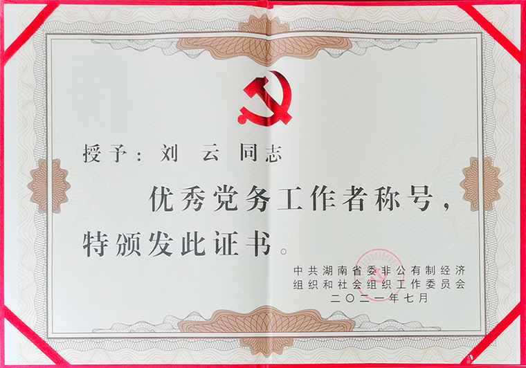 此次榮獲湖南省兩新領域“優(yōu)秀黨務工作者”榮譽,劉云書記表示,這是一份榮譽,更是一份責任。今年正值中國共產黨建黨100周年,黨史學習教育正當其時,集團黨委開展了一系列“學史明理、學史增信、學史崇德、學史力行”活動,在集團上下掀起了黨史學習的熱潮。如今站在新的歷史征程上,我們要更加緊密團結在以習近平同志為核心的黨中央周圍,認真學習貫徹習近平總書記在慶祝中國共產黨成立100周年大會上的重要講話精神,不忘初心、牢記使命,扎實開展黨史學習教育。綠之韻集團黨委將繼續(xù)強化黨建引領工作,充分發(fā)揮黨組織的戰(zhàn)斗堡壘作用和黨員的先鋒模范作用,以實際成效推動企業(yè)發(fā)展邁上新臺階、展現新作為,為全省大力實施“三高四新”戰(zhàn)略,奮力建設現代化新湖南貢獻智慧和力量,用實實在在的發(fā)展成果向建黨100周年獻禮。