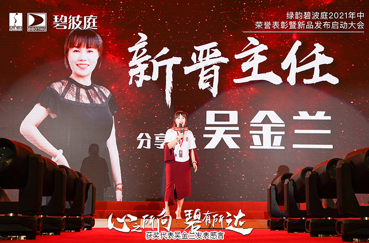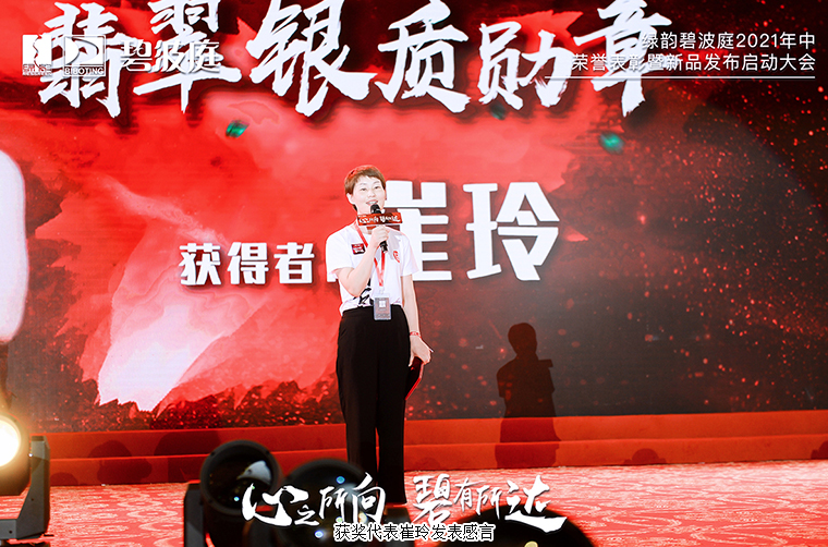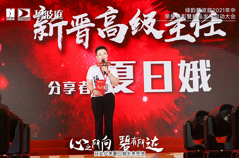 非凡的榮耀綻放榜樣的輝煌,唯有榜樣的力量,才能直擊我們的內(nèi)心,鞭笞我們不斷前行,奮勇拼搏贏來卓越成就。他們是行業(yè)中的佼佼者,是品牌發(fā)展壯大的主力軍;他們以優(yōu)秀卓越的能力,揮灑著熱血與激情,于茫茫星海中閃耀著光輝;他們奮勇拼搏不斷進取,用行動說話,以實力證明自身的力量。綠韻碧波庭副總經(jīng)理Ken、黃州瑞,綠之韻集團黨委書記劉云、副總經(jīng)理梅其慧分別為綠韻碧波庭市場新晉主任、高級主任、經(jīng)理、高級經(jīng)理頒獎。獲獎代表吳金蘭、夏日娥、崔玲、劉夢妮發(fā)表獲獎感言。