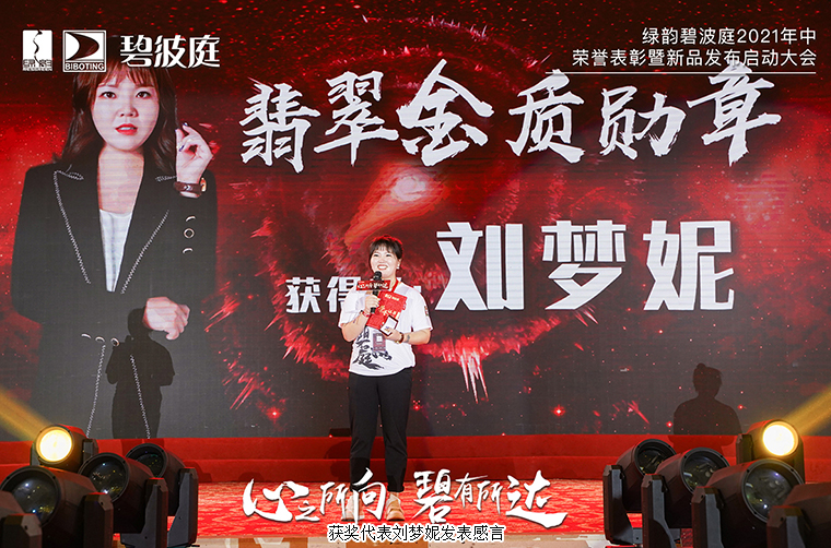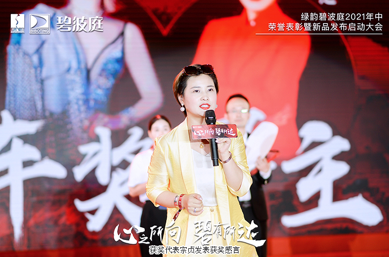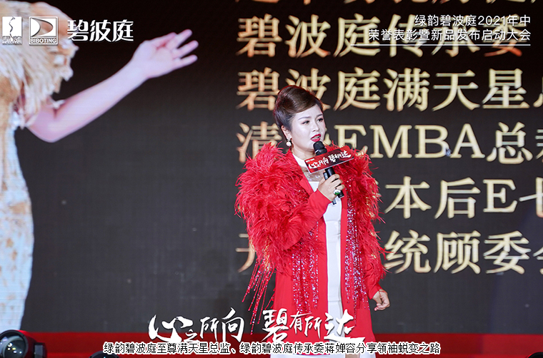 綠之韻集團董事、總裁勞嘉為大會致辭。她首先代表集團向奮斗在市場一線的每一位碧波庭家人們致以熱烈的歡迎和誠摯的問候。今年是偉大的中國共產(chǎn)黨成立100周年,是碧波庭創(chuàng)立27周年、也是綠之韻和碧波庭牽手11周年,更是集團公司“第四個五年規(guī)劃”即將收官的關(guān)鍵之年。十多年來,綠之韻集團始終朝著“建百年企業(yè)、創(chuàng)世界名牌”的企業(yè)初心不懈奮斗。同樣,綠韻碧波庭自創(chuàng)立以來始終秉承著“用實干做實業(yè)”的品牌初心。近年來,微商、社交電商、直播帶貨等對行業(yè)的沖擊越來越大,為應(yīng)對這場變革和沖擊,集團公司和碧波庭將從產(chǎn)品研發(fā)、教育培訓(xùn)、品牌推廣等方面給予市場最大的支持和幫扶,為綠韻碧波庭的家人們打造更加穩(wěn)定、優(yōu)質(zhì)的事業(yè)平臺。未來,她將與各位綠之韻家人們共同開啟綠韻碧波庭的事業(yè)藍(lán)圖,共同去實現(xiàn)每一位綠之韻家人們的夢想,共同堅守這份初心,堅守這份情誼,結(jié)緣碧波庭,圓夢綠之韻。最后,她預(yù)祝本次大會取得圓滿成功。