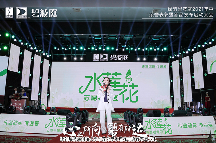 會議現(xiàn)場,綠韻碧波庭創(chuàng)始人李水蓮分享了水蓮花志愿者家園文化。2011年,水蓮花志愿者家園在上海正式成立、以中華傳統(tǒng)文化為基礎(chǔ),以關(guān)愛女性掃除乳盲為根基,在全國各地舉辦關(guān)愛女性的公益講座,不斷喚醒女性健康對社會的重要性。我們提出了“每周三,每周三次,每次30分鐘”的健康理念。27年來,綠韻碧波庭承載著數(shù)以萬計家人的愛與夢想,堅持用實在做實業(yè),堅持“寧鑿一口井,不挖10個洞”。這一路走來非常不容易,再次感謝各位家人的付出、支持與包容。吳孟超先生曾說:“這世界不缺乏專家,缺的是肯把自己給出去的人?!痹谧母魑痪褪且蝗涸敢獍炎约航o出去,愿意自己付出的人。疫情期間,有許多公司不見了,有很多團隊散掉了,但是綠韻碧波庭的團隊依然向上蓬勃發(fā)展。我深信,只要我們團結(jié)一致,朝著同一個目標(biāo)不斷付出、不斷努力,我們的團隊會越來越穩(wěn)健,我們的明天一定會更加美好。
