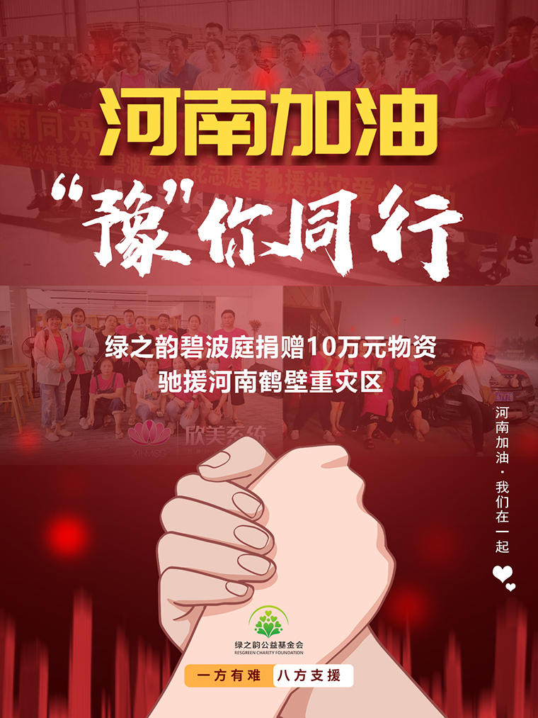 碧見(jiàn)真情,“豫”你同行。一聲加油,一種溫暖。綠之韻將持續(xù)關(guān)注河南各地災(zāi)情,與當(dāng)?shù)厥聵I(yè)伙伴和愛(ài)心志愿者送去力所能及的幫助。我們相信,只要大家團(tuán)結(jié)一致,有力、有序、有效地開(kāi)展防汛救災(zāi)工作,定能共同奪取此次防汛救災(zāi)的最后勝利。加油!河南的同胞們,我們一直與你們?cè)谝黄穑?