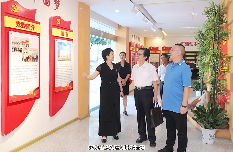 調(diào)研組一行先后參觀了綠之韻黨建文化教育基地、綠之韻國際會議中心多功能展示廳,詳細(xì)了解了綠之韻集團(tuán)的企業(yè)發(fā)展歷程、生產(chǎn)經(jīng)營狀況、企業(yè)文化建設(shè)、公益慈善以及非公黨建等方面的工作情況。綠之韻集團(tuán)作為省內(nèi)知名企業(yè),園區(qū)納稅大戶,自2003年創(chuàng)立以來,始終堅持誠信守法經(jīng)營,自覺依法決策、依法生產(chǎn)、依法經(jīng)營、依法管理,在誠信守法中健康發(fā)展,樹立了良好的企業(yè)信譽(yù)。先后多次被授予湖南省“企業(yè)信用AAA級單位”、全國“守合同重信用”企業(yè)等榮譽(yù)稱號。多年來,公司積極響應(yīng)省委省政府、市委市政府號召,不斷加大科研投入,不斷深化“產(chǎn)學(xué)研”合作,先后與南京大學(xué)、湖南農(nóng)業(yè)大學(xué)、湖南省中醫(yī)藥大學(xué)、湖南中醫(yī)藥研究院等科研機(jī)構(gòu)、高等院校達(dá)成戰(zhàn)略合作,成立了綠之韻集團(tuán)產(chǎn)品專家委員會。目前,公司擁有省級工程技術(shù)研究中心1個、長沙市企業(yè)技術(shù)中心1個,博士后科研工作站協(xié)作研發(fā)中心即將于2021年10月底揭牌并投入使用。在企業(yè)發(fā)展的同時,綠之韻積極承擔(dān)社會責(zé)任,踴躍參與和傾情捐助了書香助學(xué)、關(guān)愛困難母親、美麗鄉(xiāng)村、賑災(zāi)扶貧等100多項社會公益事業(yè),累計捐贈款物7000多萬元。調(diào)研組一行對綠之韻始終堅持企業(yè)穩(wěn)健發(fā)展、堅持黨建引領(lǐng)、積極承擔(dān)社會責(zé)任等方面的工作,以及對胡國安董事長立足崗位、主動作為、履職盡責(zé)的行為,給予了高度的肯定。