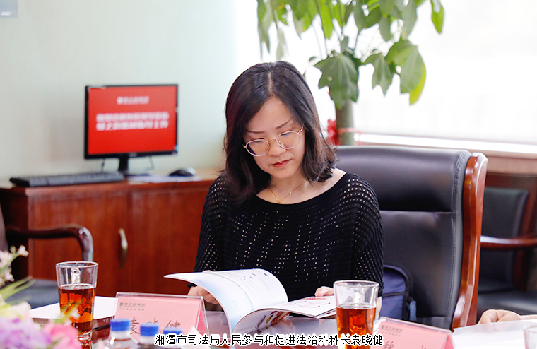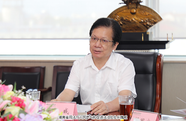 2021年9月10日,湖南省司法廳人民參與和促進(jìn)法治處處長魏威、湘潭市司法局人民參與和促進(jìn)法治科科長袁曉健蒞臨綠之韻集團(tuán)調(diào)研指導(dǎo)。綠之韻集團(tuán)董事長胡國安、董事總裁勞嘉、黨委書記劉云、工會主席兼辦公室行政總監(jiān)馮紅、黨委副書記許達(dá)仲、人力資源總監(jiān)皮勁全程陪同。