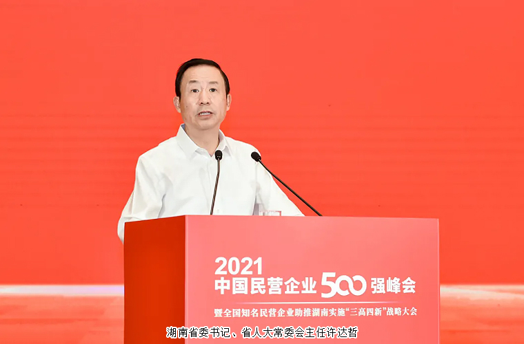 9月25日,由全國(guó)工商聯(lián)、湖南省人民政府共同主辦的2021中國(guó)民營(yíng)企業(yè)500強(qiáng)峰會(huì)暨全國(guó)知名民營(yíng)企業(yè)助推湖南實(shí)施“三高四新”戰(zhàn)略大會(huì)在長(zhǎng)沙舉行。全國(guó)政協(xié)副主席、全國(guó)工商聯(lián)主席高云龍,中共湖南省委書(shū)記、省人大常委會(huì)主任許達(dá)哲出席并分別致辭。中央統(tǒng)戰(zhàn)部副部長(zhǎng)、全國(guó)工商聯(lián)黨組書(shū)記、常務(wù)副主席徐樂(lè)江,省委副書(shū)記、省長(zhǎng)毛偉明,重慶市原市長(zhǎng)黃奇帆出席。工信部副部長(zhǎng)徐曉蘭,國(guó)家鄉(xiāng)村振興局副局長(zhǎng)洪天云,中國(guó)工商銀行副行長(zhǎng)張偉武,中國(guó)建設(shè)銀行副行長(zhǎng)王浩分別致辭。全國(guó)工商聯(lián)黨組副書(shū)記、副主席樊友山主持。全國(guó)政協(xié)副秘書(shū)長(zhǎng)、全國(guó)工商聯(lián)副主席黃榮,安徽省副省長(zhǎng)王翠鳳,貴州省政協(xié)副主席李漢宇,省領(lǐng)導(dǎo)黃蘭香、謝建輝、張劍飛、吳桂英、張健等出席。中國(guó)光彩事業(yè)促進(jìn)會(huì)理事、湖南省工商聯(lián)(總商會(huì))副會(huì)長(zhǎng)、綠之韻集團(tuán)董事長(zhǎng)胡國(guó)安受邀參會(huì)。