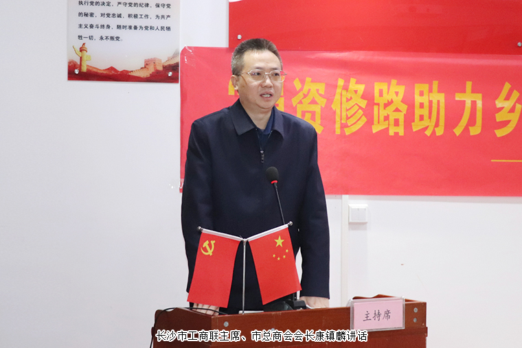 捐贈(zèng)儀式最后,長(zhǎng)沙市工商聯(lián)主席、市總商會(huì)會(huì)長(zhǎng)康鎮(zhèn)麟講話。他表達(dá)了對(duì)以綠之韻集團(tuán)為代表的優(yōu)秀民營(yíng)企業(yè)長(zhǎng)期以來(lái)對(duì)鄉(xiāng)村振興戰(zhàn)略的關(guān)心與支持的感謝,肯定了胡國(guó)安董事長(zhǎng)身為湖南省長(zhǎng)沙市光彩事業(yè)基金會(huì)理事長(zhǎng),始終堅(jiān)持以身作則、親作表率,長(zhǎng)期致力于回報(bào)社會(huì)、建設(shè)家鄉(xiāng)民營(yíng)企業(yè)家的責(zé)任和擔(dān)當(dāng)。長(zhǎng)沙益陽(yáng)兩地近在咫尺、唇齒相依,長(zhǎng)沙與安化的友誼源遠(yuǎn)流長(zhǎng),他提出,在實(shí)現(xiàn)鄉(xiāng)村振興的偉大新征程中,長(zhǎng)益兩地還應(yīng)進(jìn)一步加強(qiáng)協(xié)作,實(shí)現(xiàn)優(yōu)勢(shì)互補(bǔ),共同推動(dòng)安化鄉(xiāng)村振興工作取得新突破。他進(jìn)一步強(qiáng)調(diào),“萬(wàn)企興萬(wàn)村”行動(dòng)是黨中央交給民營(yíng)企業(yè)、工商聯(lián)的一項(xiàng)重大政治任務(wù),長(zhǎng)沙市工商聯(lián)將以習(xí)近平總書(shū)記關(guān)于實(shí)施鄉(xiāng)村振興戰(zhàn)略重要講話精神為指引,引導(dǎo)直屬商協(xié)會(huì)和廣大民營(yíng)企業(yè)切實(shí)擔(dān)負(fù)起這一光榮而艱巨的歷史使命,引導(dǎo)廣大民營(yíng)經(jīng)濟(jì)人士投身鄉(xiāng)村振興,積極探索村企合作共贏、利益共享的模式,將企業(yè)發(fā)展與鄉(xiāng)村振興、農(nóng)民富裕有機(jī)結(jié)合起來(lái),形成責(zé)任共擔(dān)、互惠互利的村企有效合作機(jī)制,在助力鄉(xiāng)村振興中傳承美德、貢獻(xiàn)力量,共同譜寫(xiě)全面推進(jìn)鄉(xiāng)村振興的新篇章。