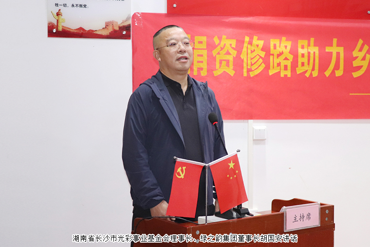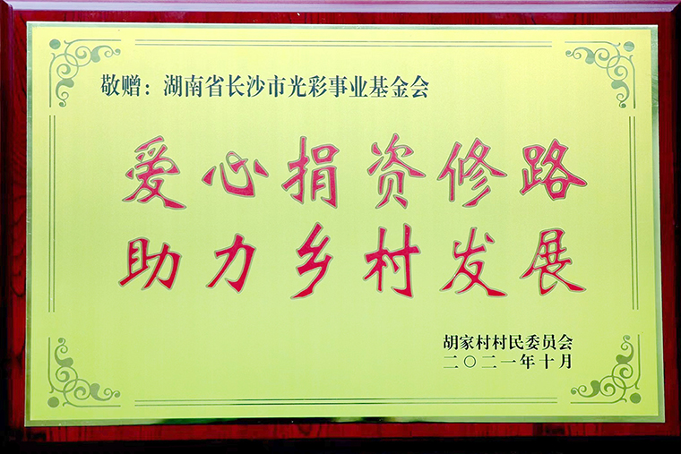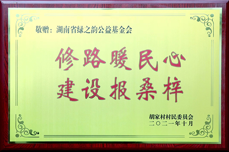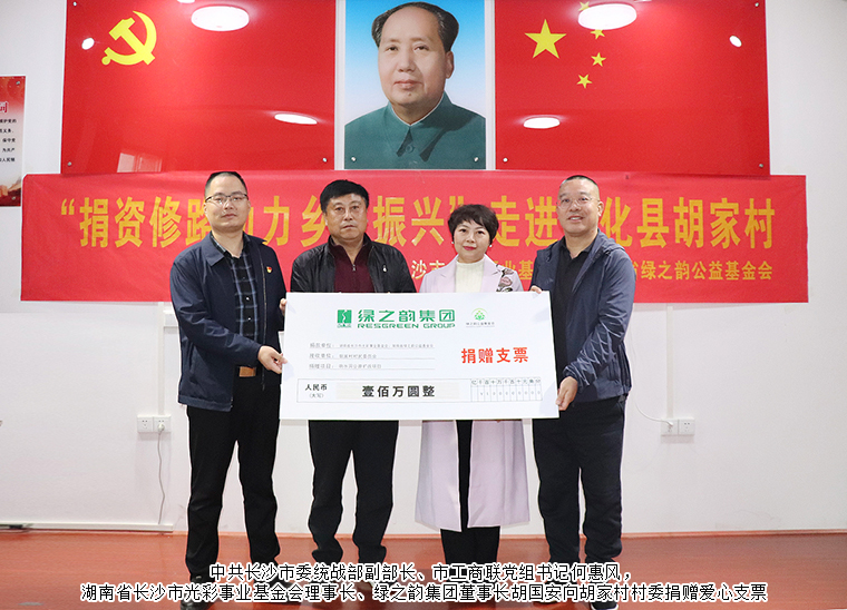 修路暖民心,建設(shè)報(bào)桑梓。胡國(guó)安董事長(zhǎng)在企業(yè)發(fā)展建設(shè)過(guò)程中不忘初心、回饋家鄉(xiāng)、回報(bào)社會(huì)的善心義舉進(jìn)行榮譽(yù)表彰。胡國(guó)安董事長(zhǎng)動(dòng)情表示:企業(yè)小的時(shí)候是自己的,發(fā)展壯大了就是國(guó)家的、社會(huì)的。作為是一名從安化胡家村走出來(lái)的企業(yè)家,多年來(lái)他始終對(duì)家鄉(xiāng)的發(fā)展保持著高度關(guān)注,先后通過(guò)捐贈(zèng)愛(ài)心校車(chē)、修橋鋪路、產(chǎn)業(yè)扶貧、愛(ài)心慰問(wèn)等多種形式助力家鄉(xiāng)建設(shè),感恩回報(bào)父老鄉(xiāng)親。此次通過(guò)長(zhǎng)沙光彩事業(yè)基金會(huì)定向捐贈(zèng)100萬(wàn)元用于胡家村道路擴(kuò)改提質(zhì),旨在助力家鄉(xiāng)幸福美麗鄉(xiāng)村建設(shè)和生態(tài)旅游產(chǎn)業(yè)發(fā)展,為家鄉(xiāng)的父老鄉(xiāng)親們做點(diǎn)實(shí)事。未來(lái),他將帶領(lǐng)綠之韻集團(tuán)將繼續(xù)創(chuàng)新工作思路,注重幫扶實(shí)效,進(jìn)一步推動(dòng)輸血式幫扶向產(chǎn)業(yè)化發(fā)展、造血式幫扶轉(zhuǎn)變。作為湖南省長(zhǎng)沙市光彩事業(yè)基金會(huì)理事長(zhǎng),他將在長(zhǎng)沙市委統(tǒng)戰(zhàn)部、長(zhǎng)沙市工商聯(lián)的統(tǒng)一部署下,率先垂范,全面推進(jìn)家鄉(xiāng)的鄉(xiāng)村振興建設(shè),以良好工作業(yè)績(jī)回報(bào)各位領(lǐng)導(dǎo)和同仁們的重托與期望。作為一名民營(yíng)企業(yè)家,他將繼續(xù)引領(lǐng)企業(yè)積極履行社會(huì)責(zé)任,高度關(guān)注和支持家鄉(xiāng)益陽(yáng)的建設(shè)和發(fā)展,用實(shí)實(shí)在在的行動(dòng)帶動(dòng)更多的愛(ài)心人士和企業(yè)參與到“萬(wàn)企興萬(wàn)村”和助力光彩事業(yè)中來(lái),使家鄉(xiāng)人民得實(shí)惠、普受惠、常受惠,努力為現(xiàn)代化新益陽(yáng)建設(shè)貢獻(xiàn)自己的一份力量。