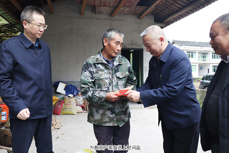 儀式過(guò)后,在胡家村村委干部的陪同下,長(zhǎng)沙市工商聯(lián)主席、市總商會(huì)會(huì)長(zhǎng)康鎮(zhèn)麟與綠之韻集團(tuán)胡國(guó)安董事長(zhǎng)一行前往安化胡家村響水洞公路擴(kuò)改項(xiàng)目現(xiàn)場(chǎng)進(jìn)行驗(yàn)收檢閱,并先后走訪了脫貧戶家庭,為他們送去了慰問(wèn)金、米糧和綠之韻健康產(chǎn)品。胡國(guó)安董事長(zhǎng)家鄉(xiāng)這條新修的路在青山綠水中盤(pán)繞,大大提高了村民們的交通安全感和幸福感,相信腳下這條公益路一定會(huì)成為家鄉(xiāng)人民的共同富裕的重要支撐和幸福引擎。