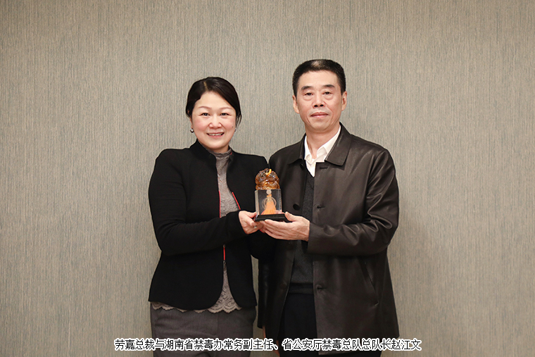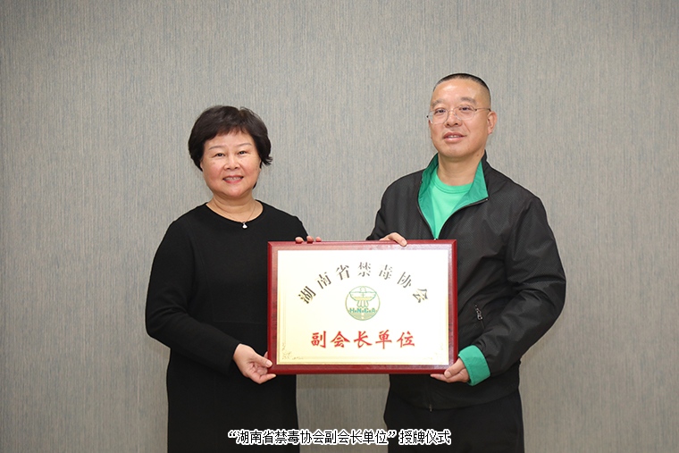 今年3月,湖南省禁毒協(xié)會第四屆會員代表大會在長沙召開,綠之韻集團當(dāng)選湖南省禁毒協(xié)會第四屆理事會副會長單位。借此工作交流之際,湖南省禁毒協(xié)會會長董瑛代表省禁毒協(xié)會向胡國安董事長授予“湖南省禁毒協(xié)會副會長單位”牌匾。董瑛會長對綠之韻集團大力參與和支持禁毒工作的行為表示衷心的感謝,她強調(diào),毒品是全人類的公害,毒品問題的發(fā)展蔓延,不但嚴(yán)重侵害人民群眾的身心健康,造成巨大的經(jīng)濟損失,而且嚴(yán)重敗壞社會風(fēng)氣,污染社會環(huán)境,渙散民族精神,成為影響經(jīng)濟社會發(fā)展、影響子孫后代的重大隱患。新型毒品還有一個后發(fā)作時期,可能3-5年,未來吸食毒品的群體性事件和吸毒人員的肇事肇禍?zhǔn)录容^多,作為社會人士,我們不僅要增強參與禁毒斗爭的自覺性和抵御毒品的能力,更應(yīng)該竭盡全力普及宣傳禁毒知識,以達到社會環(huán)境的凈化。