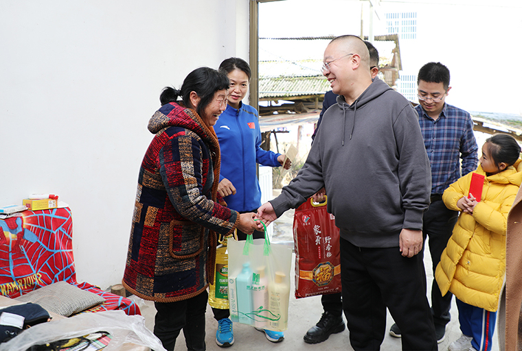 儀式過后,在胡家村村委干部的陪同下,致公黨湖南省委會副主委、湖南省體育局局長羅雙全,致公黨湖南省委會互聯(lián)網(wǎng)+專委會主任劉健與胡國安董事長一行走訪了脫貧戶家庭,為他們送去了慰問金、米糧和綠之韻健康產(chǎn)品。