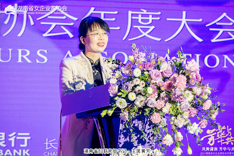 活動分為薈芳華、共芳華、品芳華、綻芳華四個篇章,在全年回顧宣傳片中拉開序幕。張海霞會長作年度工作報告,吳建平書記作黨總支工作報告,汪海燕副會長作財務工作報告,汪萍監(jiān)事長作監(jiān)事會報告。湖南省婦聯(lián)黨組書記、主席黃芳在講話時表示,2021年省女企協(xié)在海霞會長的帶領(lǐng)下,主動融入全省經(jīng)濟發(fā)展的大潮,大家齊心協(xié)力搭建交流平臺,尤其是今年建黨百年組織的巾幗心向黨活動贏得了社會的認可。面對疫情,會長企業(yè)帶頭,各級會員積極響應,累計捐款捐物合計3000多萬,彰顯了湖南企業(yè)家們的大愛情懷。她希望協(xié)會能不斷提高向心力和凝聚力,使省女企業(yè)家協(xié)會發(fā)展壯大,成為助推湖南高質(zhì)量發(fā)展的一支紅色娘子軍。