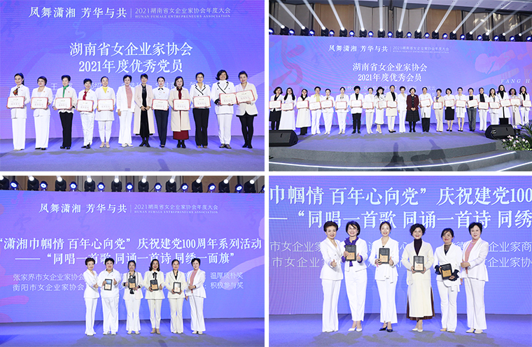 2021年,在第六屆理事會的領(lǐng)導下,在廣大會員的大力支持和積極配合下,協(xié)會認真踐行服務宗旨,引領(lǐng)瀟湘女企業(yè)家聽黨話跟黨走,為經(jīng)濟社會發(fā)展貢獻巾幗力量。在建黨100周年來臨之際,協(xié)會組織開展了一系列主題鮮明、參與廣泛的協(xié)會活動,展示了廣大瀟湘女企業(yè)家積極向上的良好風貌。其中,涌現(xiàn)出了一批履職盡責、積極主動、無私奉獻的優(yōu)秀代表。大會集中頒發(fā)了“優(yōu)秀黨員”“優(yōu)秀會員”“優(yōu)秀團體會員”“優(yōu)秀協(xié)會工作者”等獎項。勞嘉總裁被授予“瀟湘巾幗情 百年心向黨”慶祝建黨100周年系列活動——紅色之旅“兢兢業(yè)業(yè)”獎。